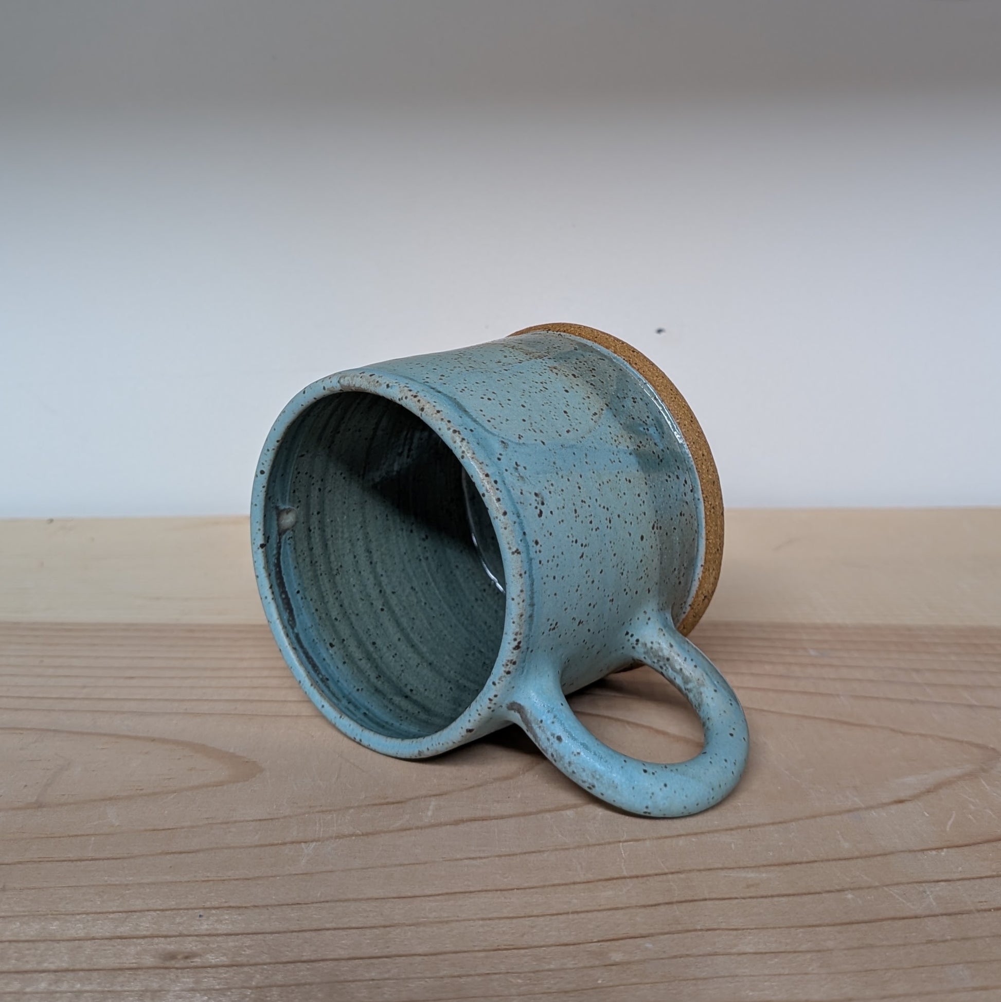 A small cup, perfect for a double shot of espresso, cortado or a juice. Thrown on the wheel and hand glazed. Fired in a kiln, stoneware, dishwasher and microwave safe.