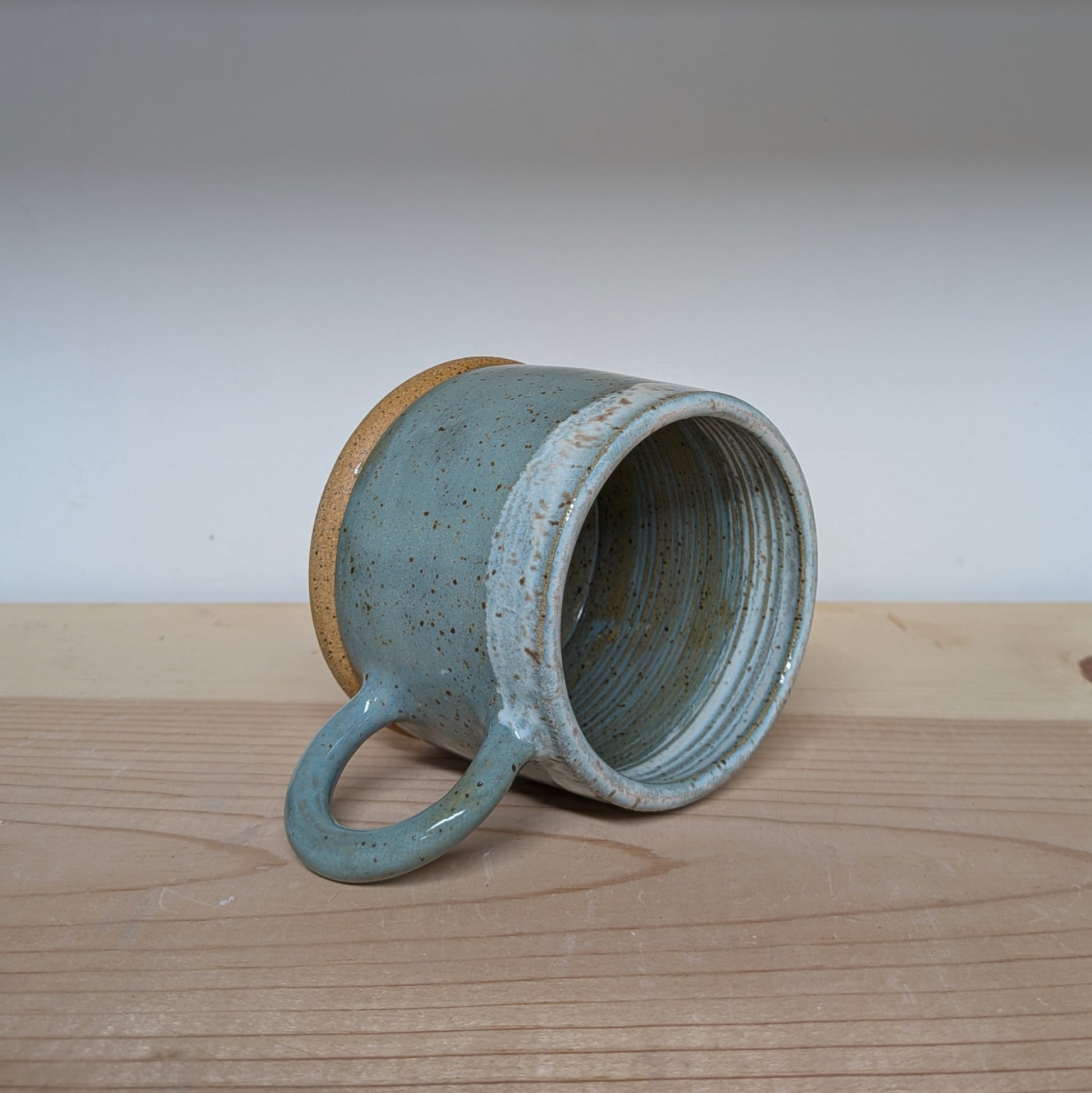 A small cup, perfect for a double shot of espresso, cortado or a juice. Thrown on the wheel and hand glazed. Fired in a kiln, stoneware, dishwasher and microwave safe.